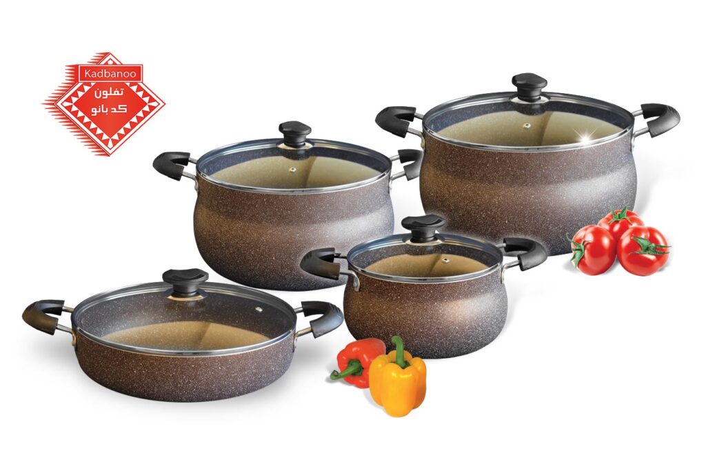 Kadbanoo Süper Granit’in 8 parçalı servisi 280-240-200 ölçülerinde tencere ve 280 ölçü iki kulplu tavalı kavanoz modelidir. Bu servis gövde içi ve dışı granit kaplamalı olarak üretilmekte olup en iyi malzeme ile 3 mm kalınlığında üretilmektedir. Bu ürün 18 ay garantilidir ve güzel renklerde sunulmaktadır. Bu ürünün kulpları metal olup yüksek dayanıklılık ve kaliteye sahiptir.