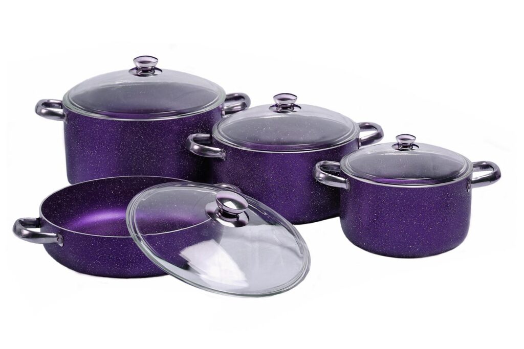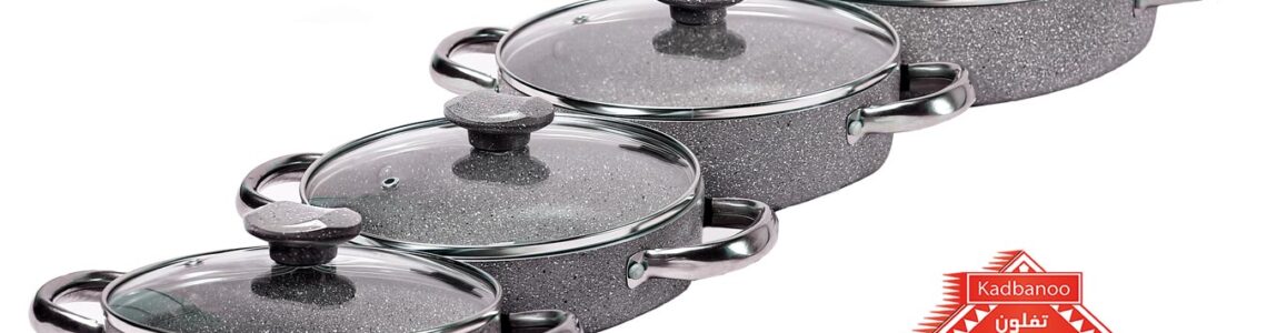 Kadbanoo 8-piece set of super granite has pots with a size of 280-240-200 and a pan with two handles of size 280. This service is produced with granite cover inside and outside the body and is produced with a thickness of 3 mm with the best material. This product has an 18-month warranty and is offered in beautiful colors. The handles of this product are metal and have high durability and quality.